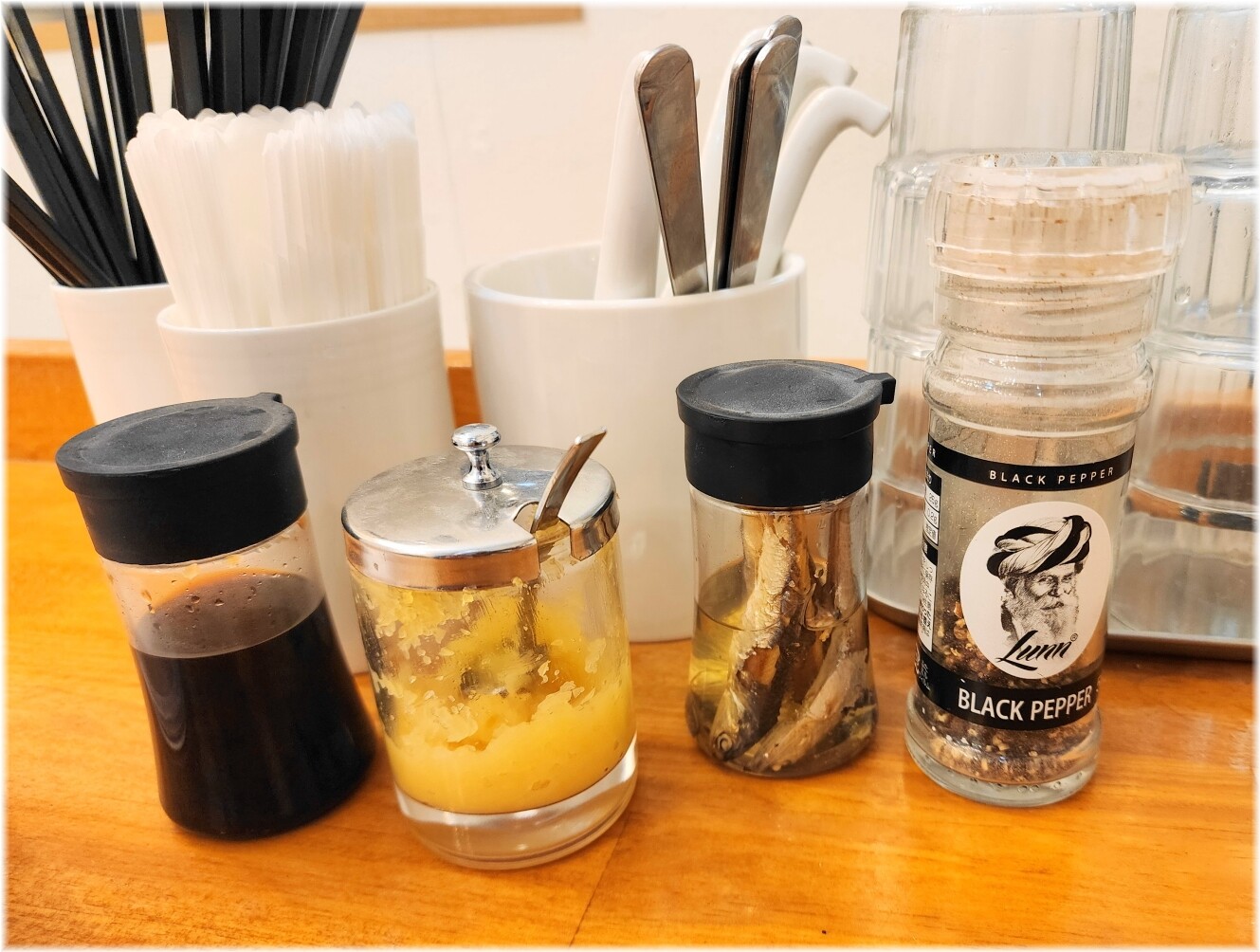 調味料や無料のニンニク、玉ねぎ、紅生姜等とても多くの味変アイテムがありますので使い倒して自分好みを見つけるのも楽しいかもしれませんね。