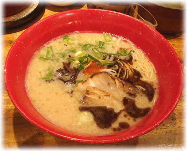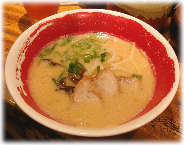 赤丸の方は、マー油がきいて味も濃い目なのででまだ食えるのですが、白丸の方は九州人の連れも言っていましたが薄いです。味が薄いとかじゃなくて豚骨が薄いです。うーん・・・。(~ヘ~;) コメントは本店や恵比寿店なども参考にしてみてください。(福岡のコメントは参考にならないと思いますが・・・。(^_^;))