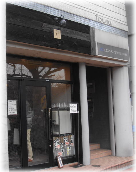 こちらは市ヶ谷と飯田橋のほぼ中間にありまして、店先に暖簾や看板などの目印が無く、小さい四角い看板に「麺処くるり」とさりげなく書いてあるだけなので注意が必要です。まぁでも行列でわかるかな。