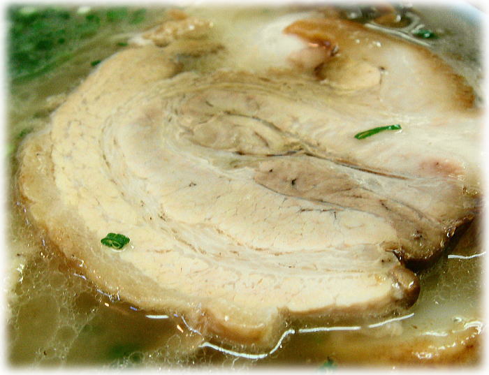 チャーシューは分厚いバラチャーシューと丼の半分くらいあるでかいチャーシューが大量に入っていまして後半飽きましたが、柔らかすぎず硬すぎずこれまた美味いです。他にはネギ、海苔、そして味が濃い目のメンマが乗っています。