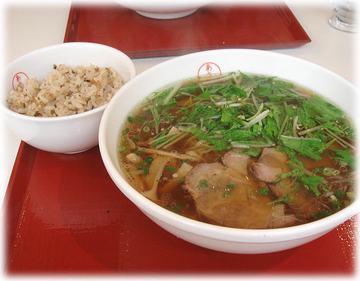 お薦めがよくわからないので醤油ラーメンとかやくごはん、そしてお連れさんは冷やしらーめんを注文。無料で大盛りにも出来るみたいですけど普通で頼んで見ました。