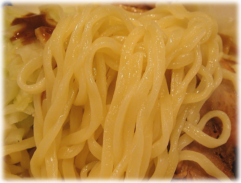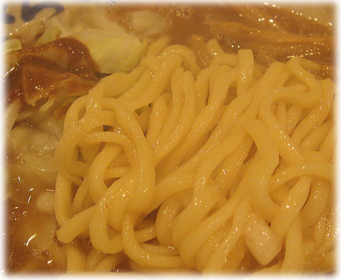 そしてそこにあわさる麺は平打ちの太麺ですすりやすさがよくてスープを持ち上げてズンズルいけます♪