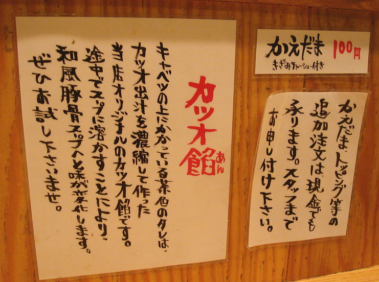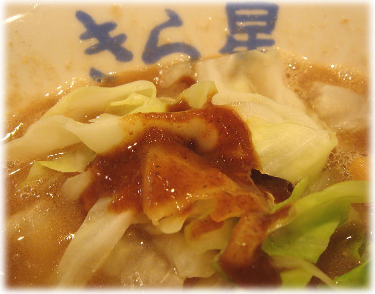 そして、濃厚ド豚骨を味わった後はキャベツの上にちょこんと乗っている液状のカツオ餡を溶かしながら食べ進みます。