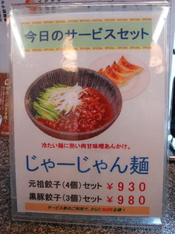 今日は以前食べた時に結構美味しかった「味噌そば」狙いで入店。今日のサービスセットを見ると「じゃーじゃん麺」なるものが目に入りました。