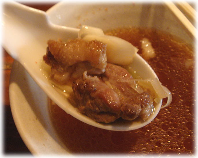 つけ汁の中にはちゃんと鴨肉が入っておりまして、柔らかくは無いですけど鴨本来の味を楽しめることでしょう。スープ割りも聞いていみると出来るとのことなので注文。油と甘みが多少消えてダシの美味さを感じられてこちらもなかなか美味しかったです♪