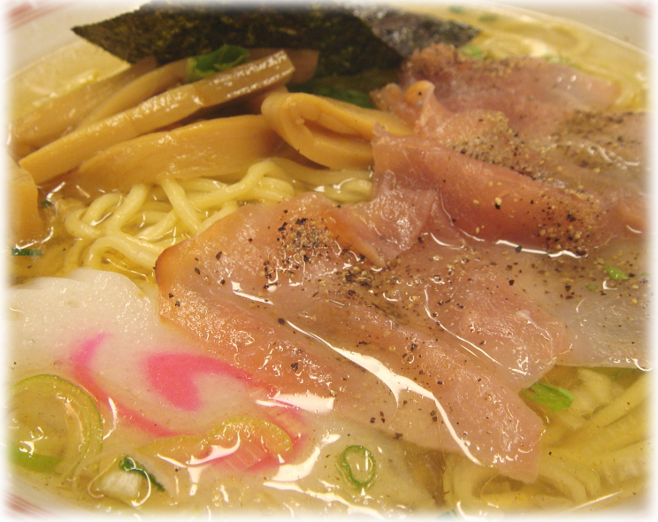 具のチャーシューは生ハムを使用していまして、塩気が強いですが味付けあっさりのスープには丁度いい感じで合っていると思いました。