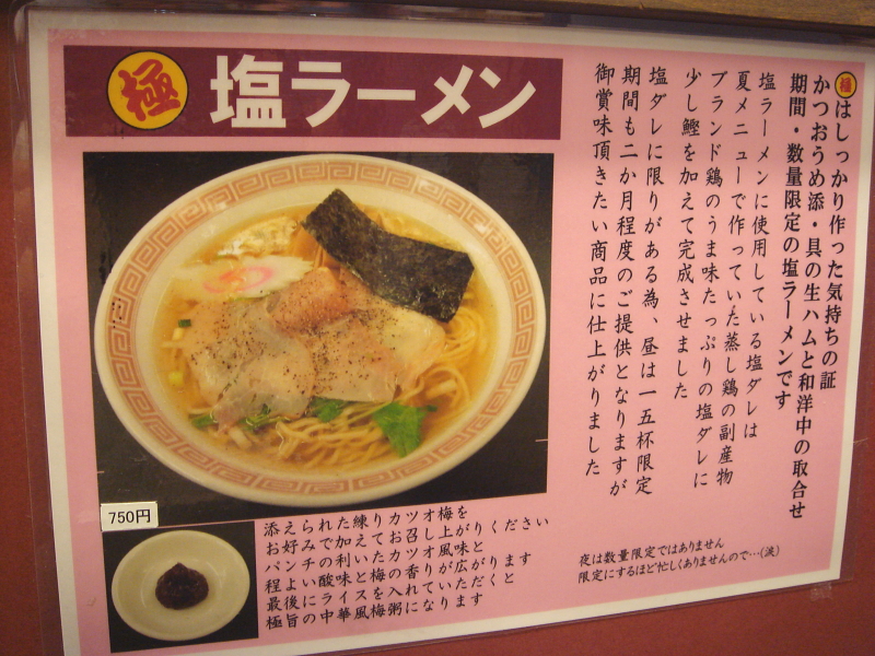 店内の塩ラーメンの説明書きを見ると「限定にするほど忙しくありませんので・・・(涙)」と書いてありました。(ToT)