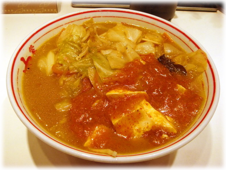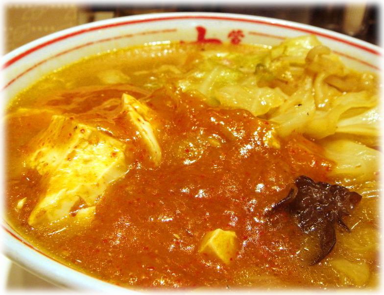 辛い蒙古麻婆が掛かっていない部分のスープを飲んでみると、ダシのきいたコクあるマイルドな味噌タンメンで当然ですが辛くありません。