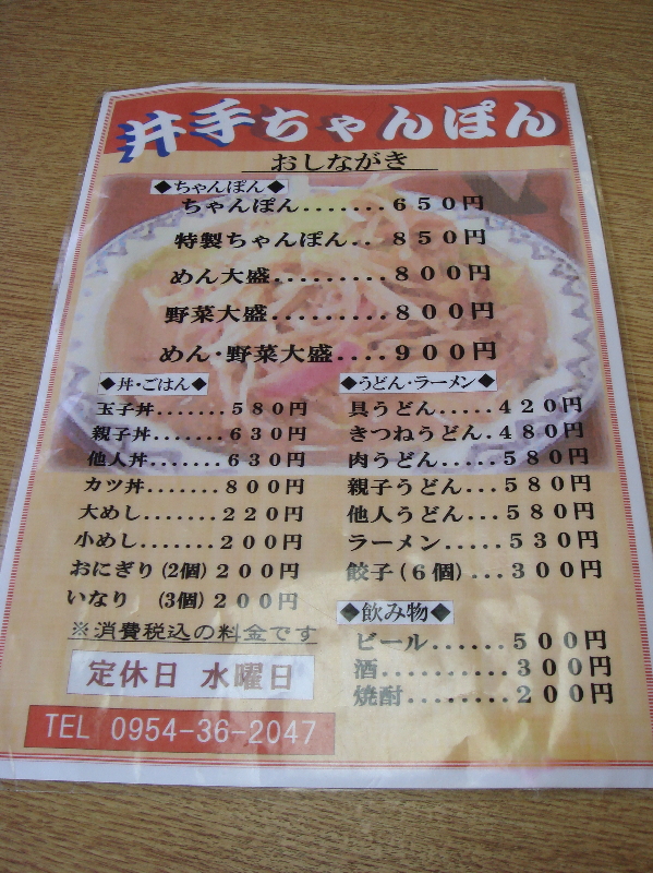 昔はココと伊万里の支店(現在は「伊万里ちゃんぽん」に店名変更)だけでしたが、今ではFC店みたいですけど佐賀市内や佐世保市内、そして2009年4月からは福岡県筑紫野市にも支店があるみたいです。