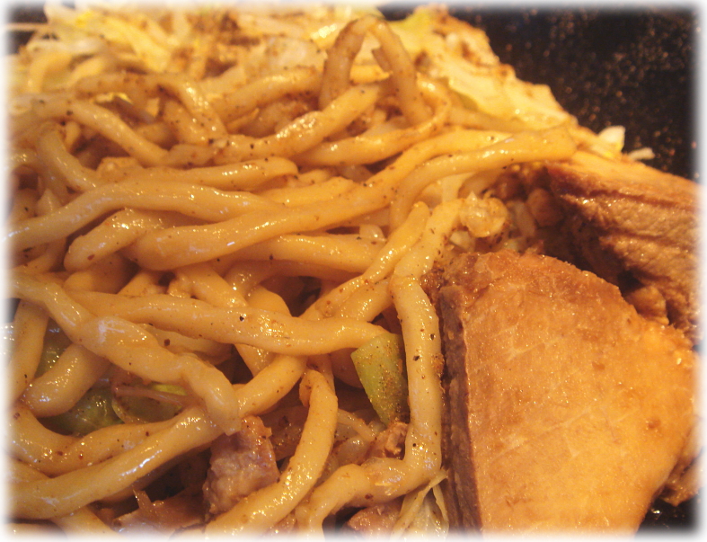 野菜はキャベツは少しでモヤシ率高し。量的にはそんなに多く感じませんでした。 豚は残念な事にパサパサのバッサバサで超硬目・・・。ww(-_-;)