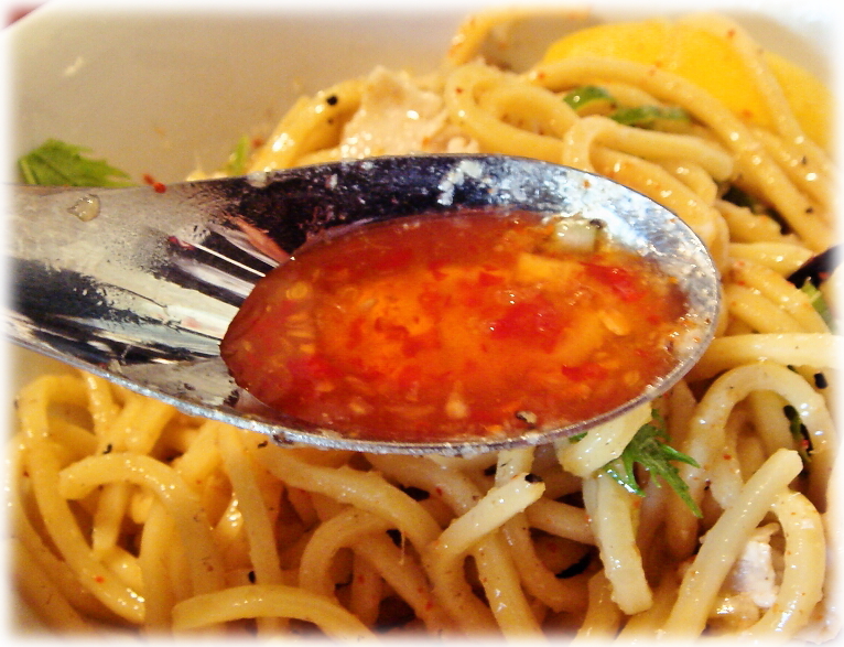 その後に「こちらをお好みでどうぞ〜」とのことでスイートチリソースが目の前に。