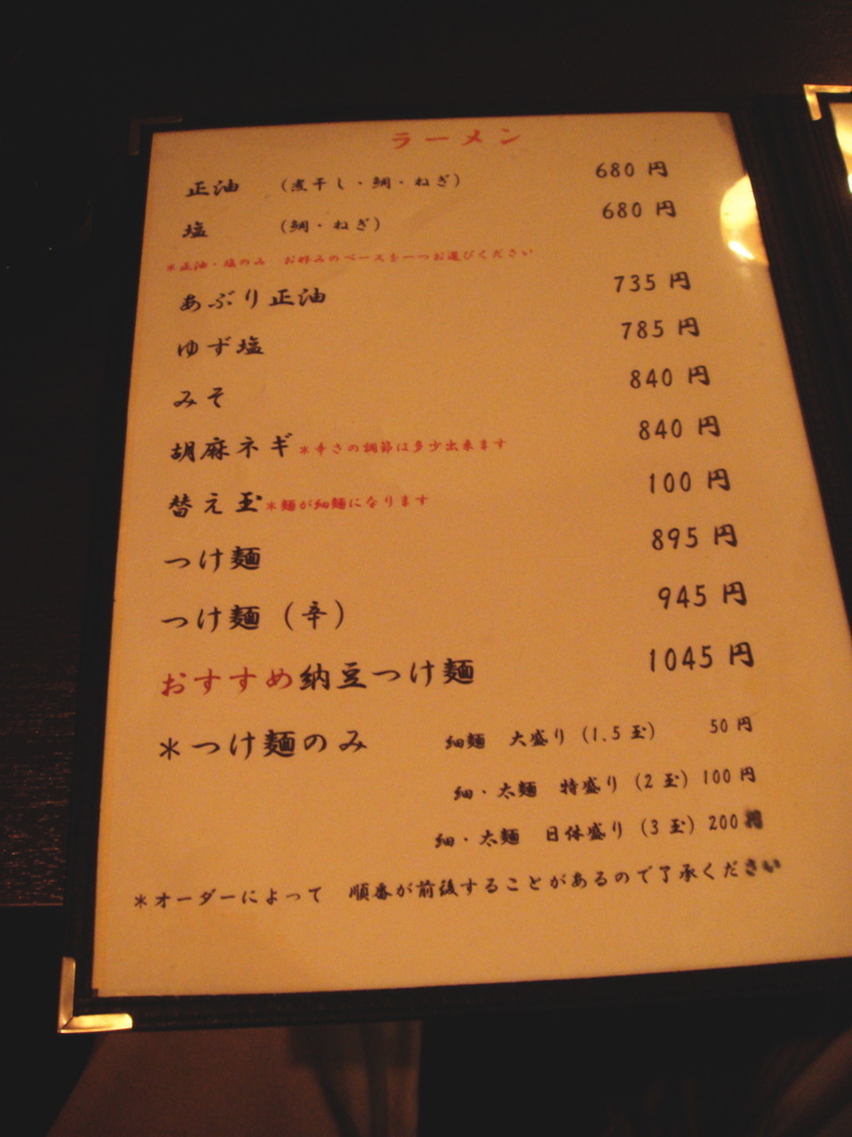 土曜日と祝日は昼の部もやっているので以前店の前まで来たことがあるのですが、14時過ぎでスープ切れとのことで悔しい思いをしたことがあります。