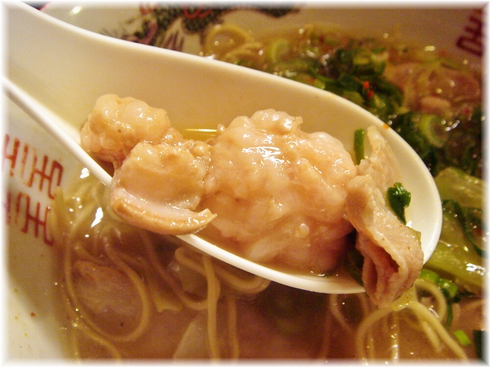 モツの脂がスープに溶け込むのか普通のラーメンよりもこってりしていますが、くどく無くてなかなかいけます。