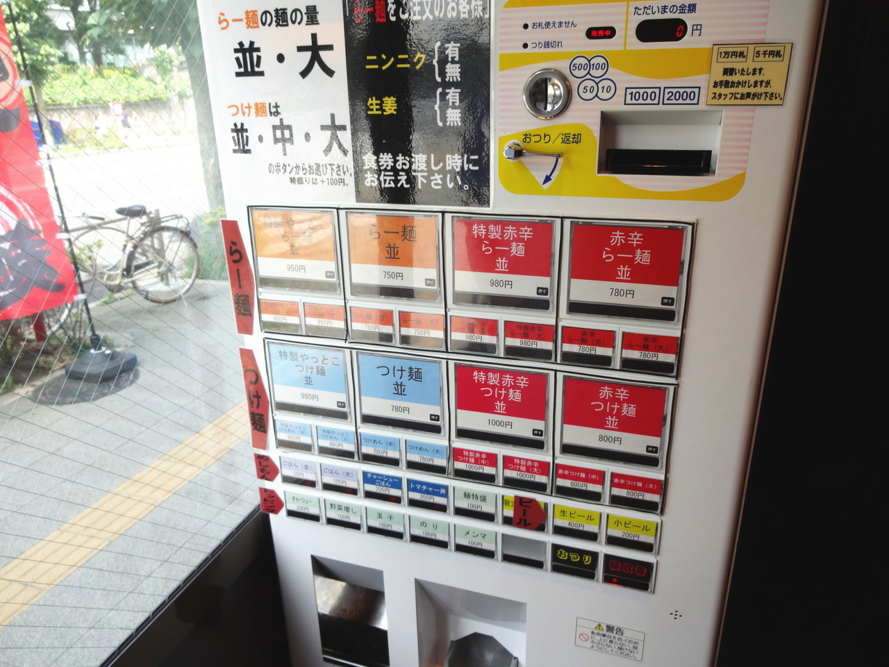 ノーマルの味噌ラーメンと赤辛ラーメン、そしてつけ麺がラインナップ。