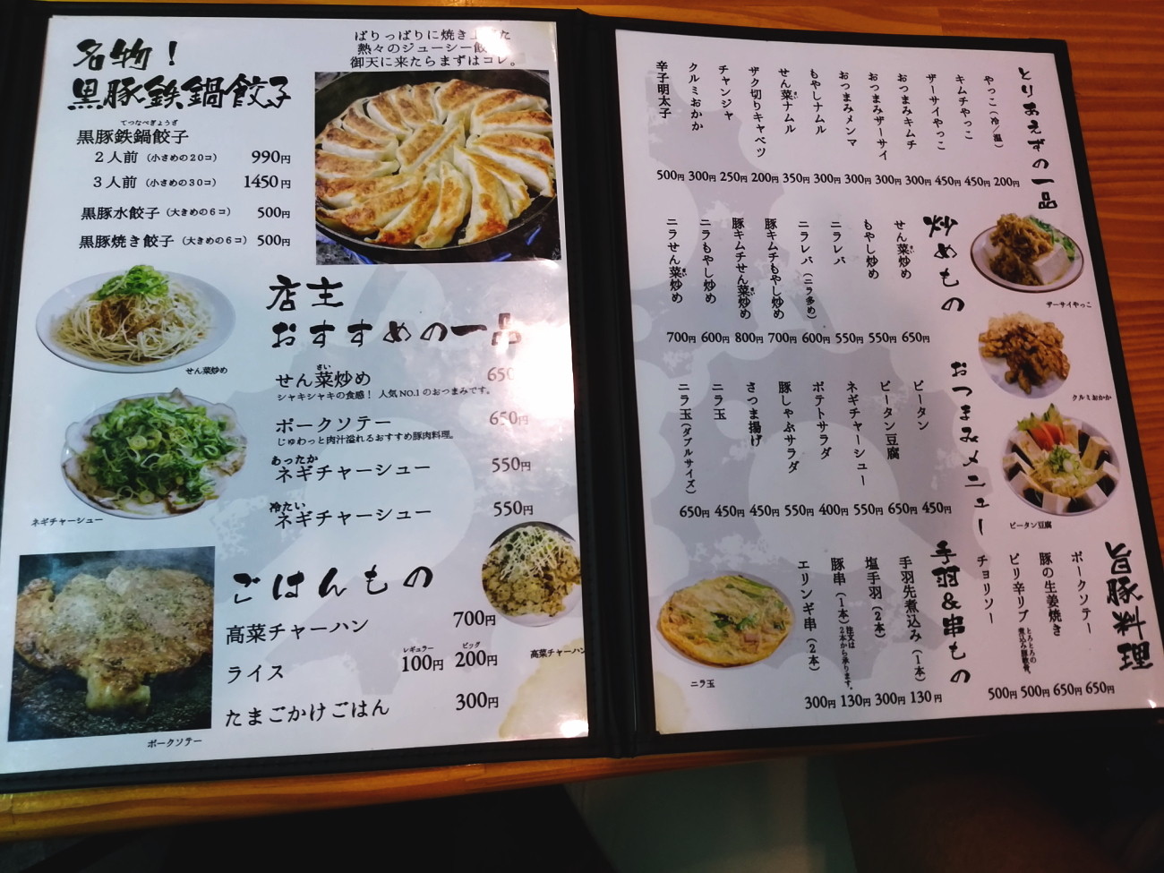 ネギチャーシューや黒豚鉄鍋餃子など色々堪能しました。
