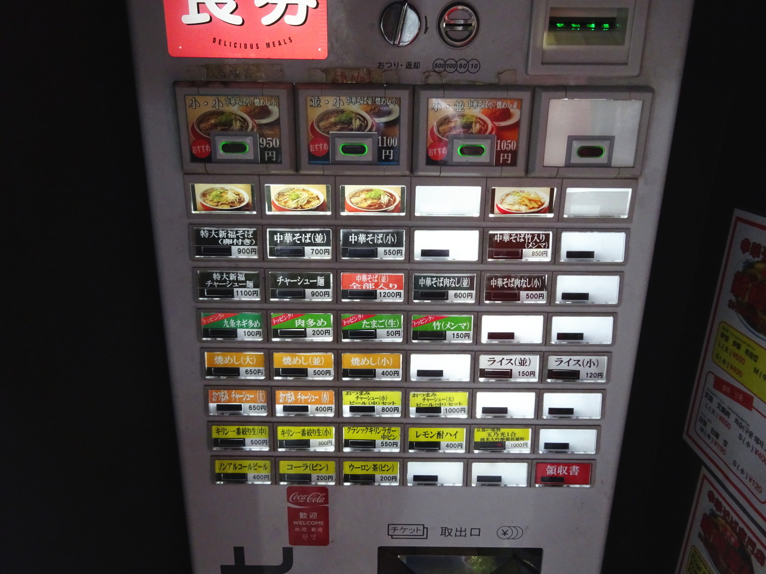 券売機が店頭右側にありますのでそちらで中華そば(並)と焼めし(小)のセットに生たまごトッピングをお願いしました。