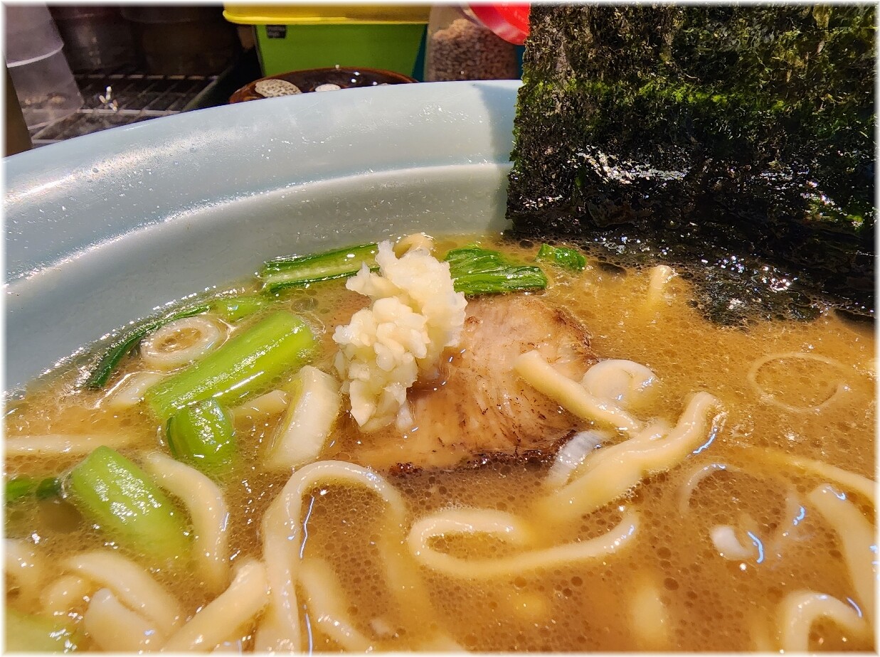 ズルズルと食べ進み最後は刻みニンニクを入れて味変。