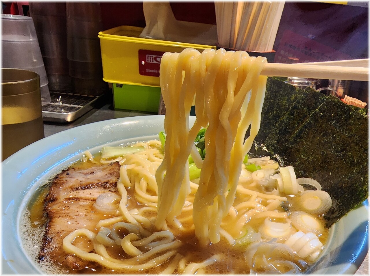 好み普通で頼んだんだけどマイルド且つ食べやすい豚骨醤油で美味いんじゃないかな。