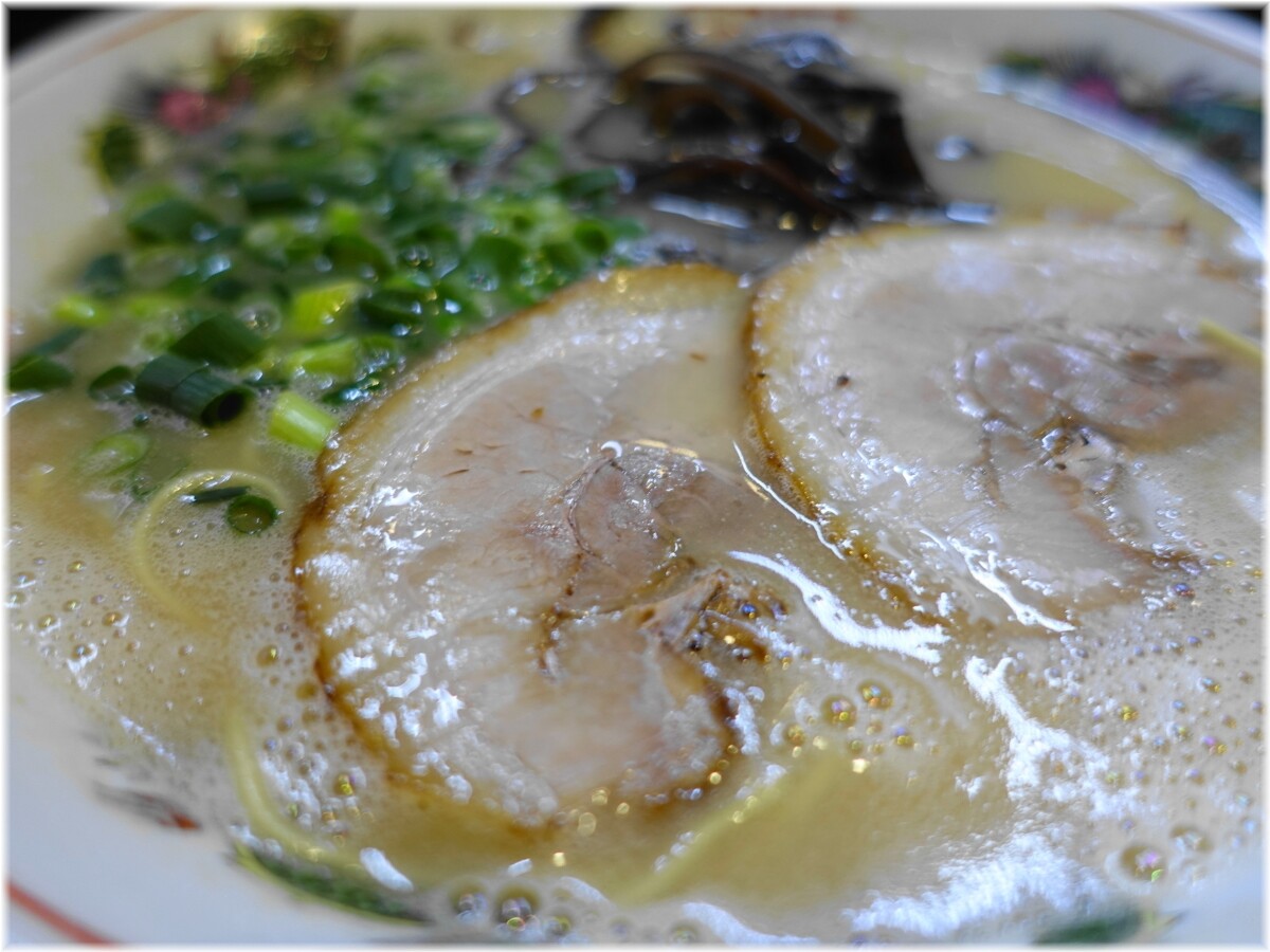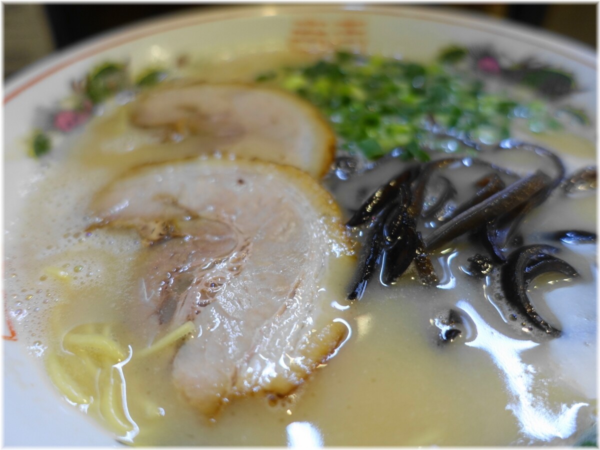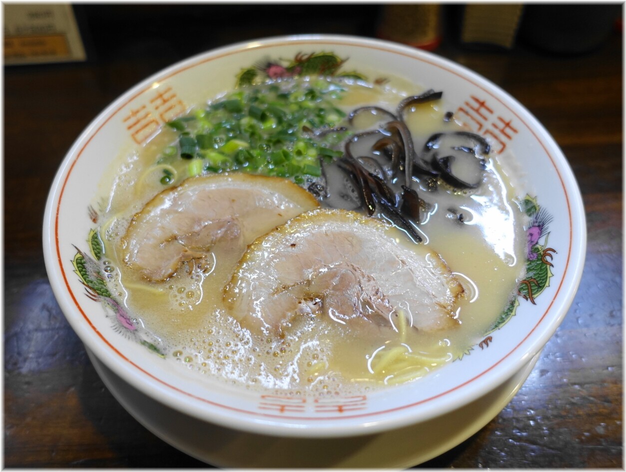 具には青ネギ、キクラゲ、チャーシューとシンプルな博多仕様。
