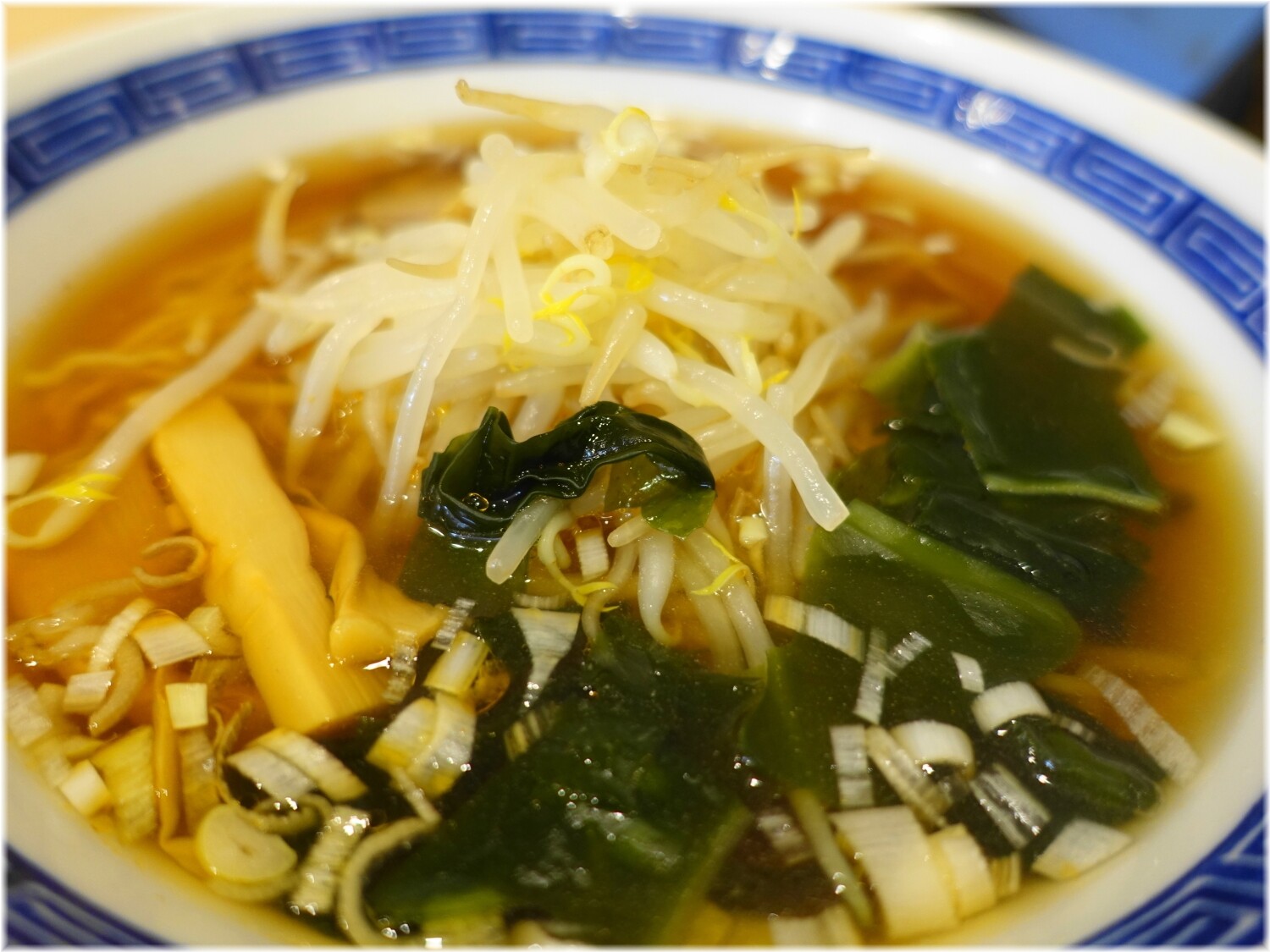具にはモヤシとワカメにチャーシュー、メンマ。