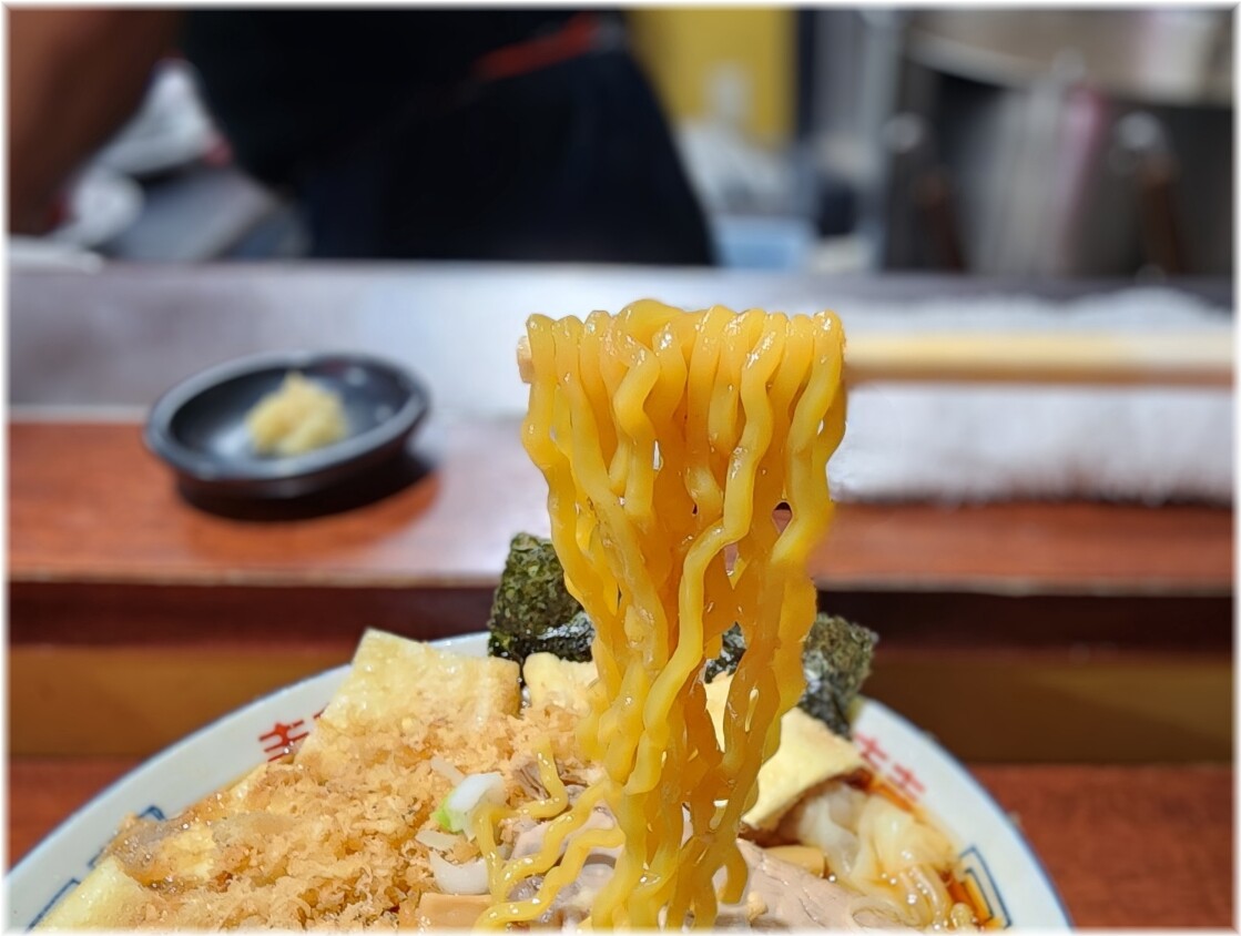 麺は菅野製麺所製の中太縮れ麺でスルスルと啜れて食感がいいもの。