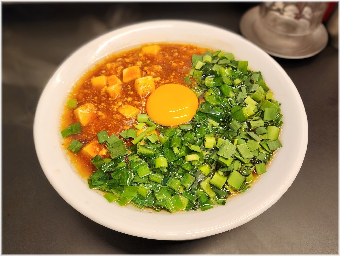 「麻婆麺」や「ニラ玉そば」が単品でありますけどこちらに来たら看板メニューの「ニラ玉麻婆麺」を頼むのがベストだと思いそちらで。