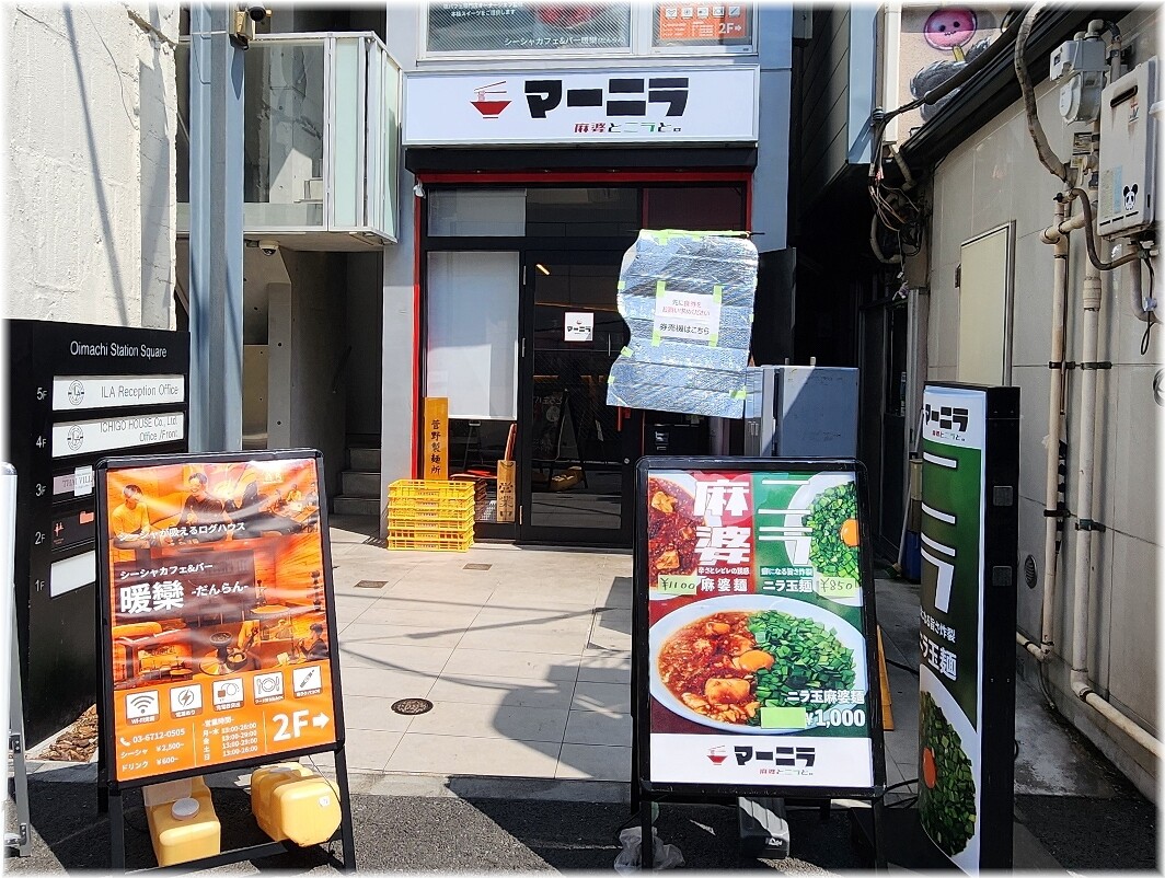 麻婆とニラで「マーニラ」ってことで麻婆麺とニラそばのいいとこ取りのお店が大井町駅東口からすぐの所に2025年7月末にオープン。