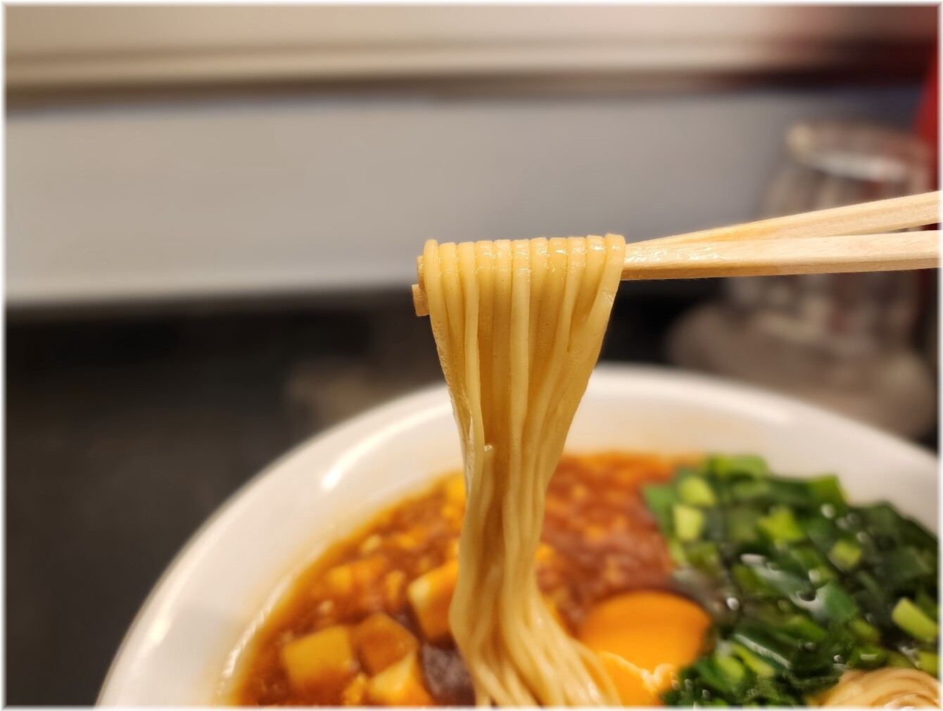 薄切りながらもホロホロに柔らかいチャーシューや味玉が味付けが良く美味しい。