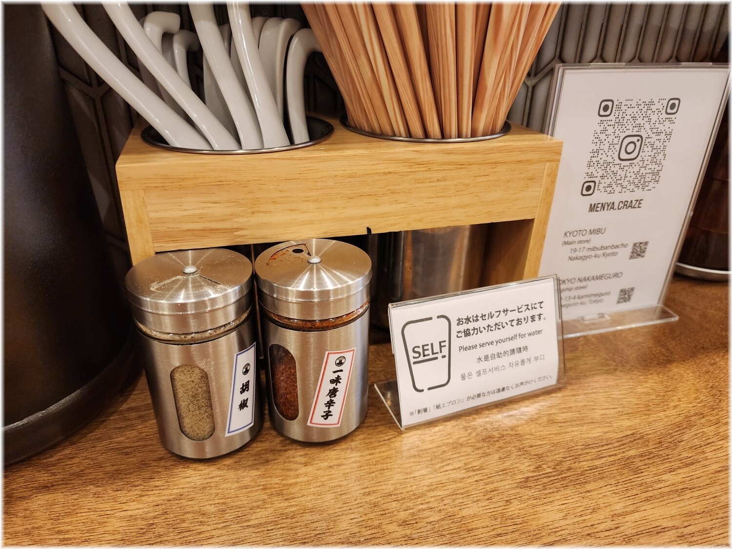 刺激が足りない方は卓上にスパイス等が全て揃っていますので調整するといいでしょう。