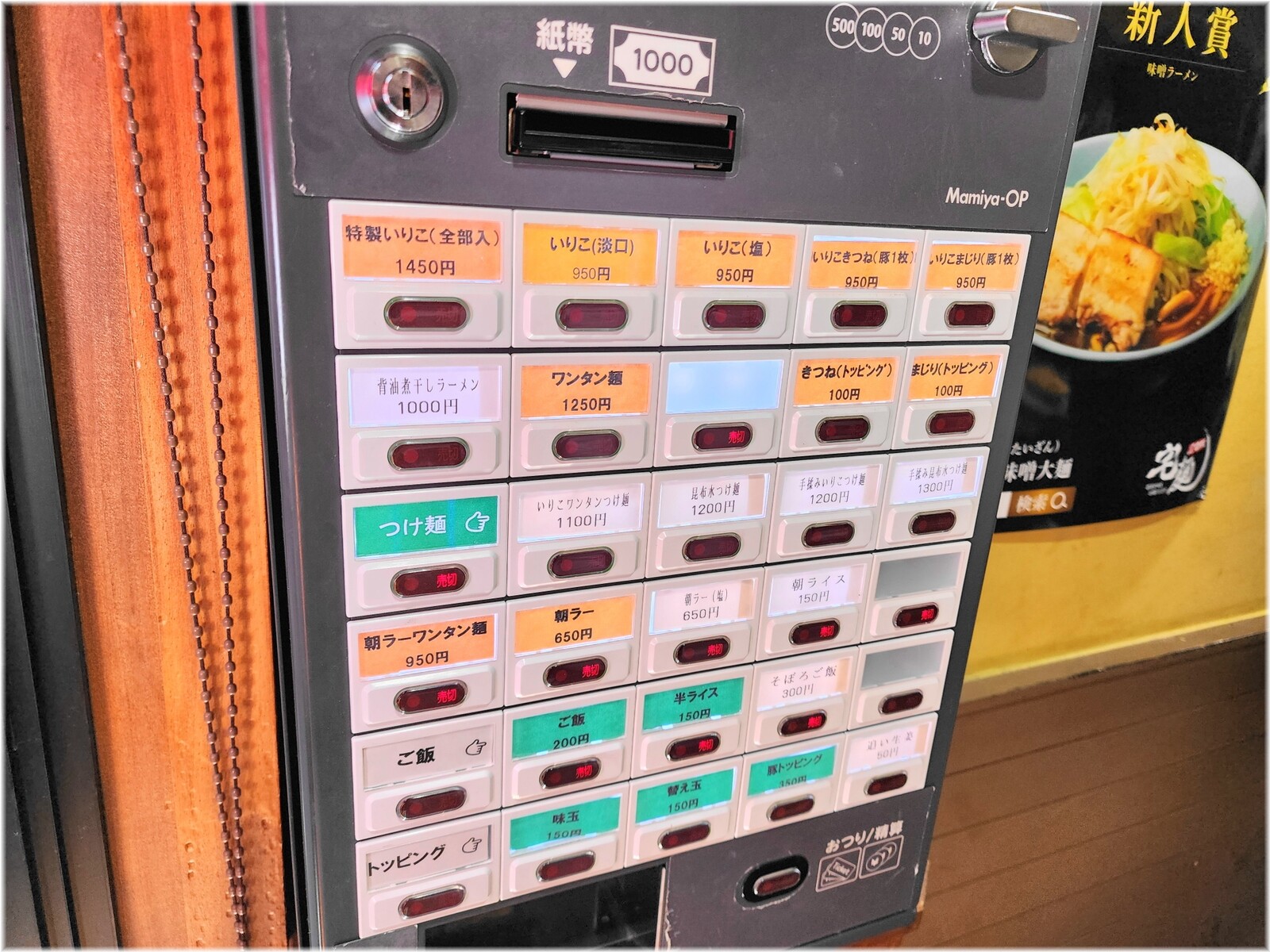 外にある食券機にて食券を購入。