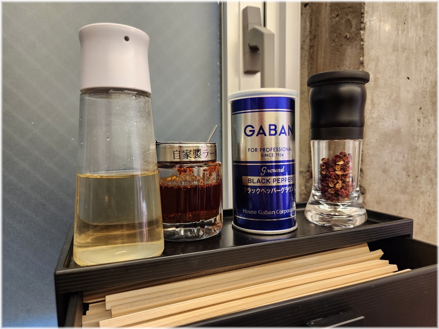 卓上にラー油や花椒があるのでお好みで加えてみるのもいいかと思います。