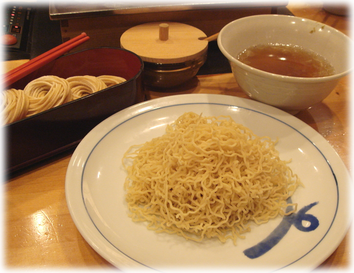 そして続いては最初から付いて来るお蕎麦を食べてみたんですけど、やはりこのつけだれには蕎麦の方が合いますね。(^_^;)(爆)
