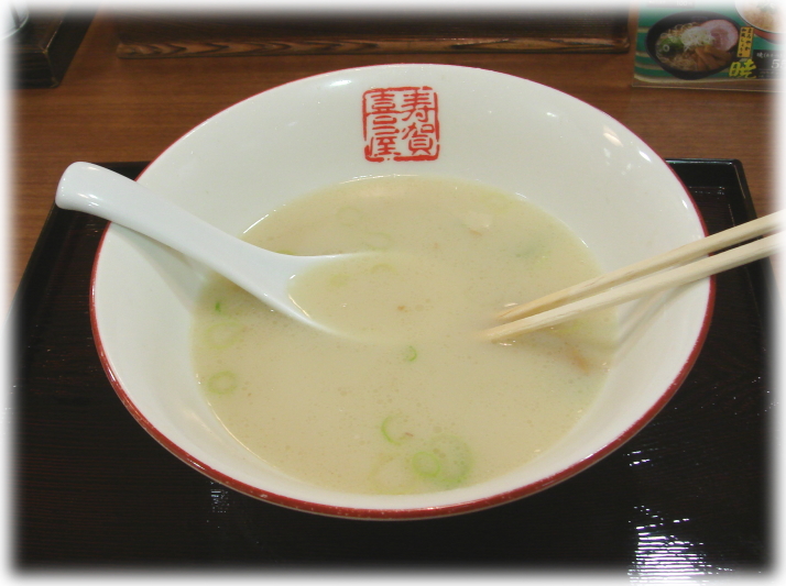 あと、残念だったのがラーメンスプーンで食べれなかった事・・・。(-_-;)やはりスガキヤと言えばスプーンの先にフォークが付いたみたいなへんてこりんなラーメンスプーンなんですけど、こちらは普通のレンゲに割り箸でした。