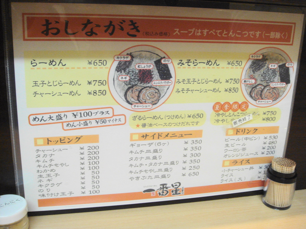 らーめん650円 他メニューはこちら