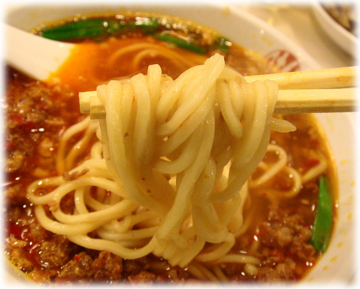 麺は意外に硬めの茹で具合の中麺で辛いスープに絡みまくりで、すするとむせますので注意が必要です。ゴホッ!w(+_+)私は完食しましたけどみなさんは撃沈!だめねぇ・・・。(^_^;)