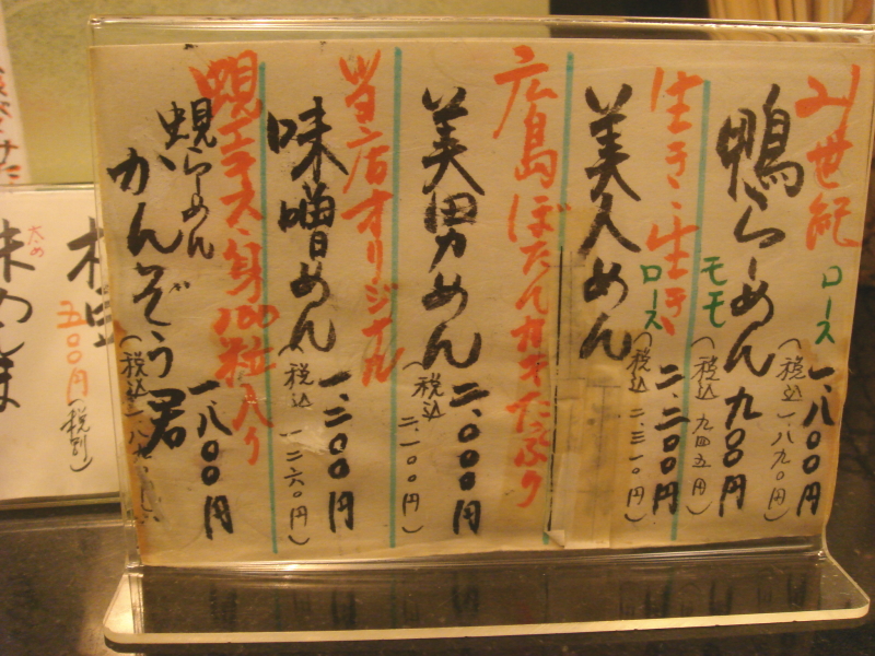 毎度毎度ですけど、錦で散々飲んだ後w〆でこちらに久々に入店です。店内は酔っ払いさんでいっぱいで、みなさんも飲んだ後の〆で来ているようでした。ココに今度来たら「かんぞう君」なる蜆(シジミ)が100粒入った(と書いてある)ラーメンを食べようと前回宣言しているので、1800円もしますけどもちろんそちらを注文です♪
