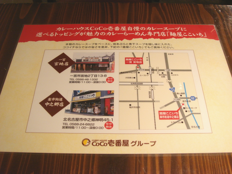 時間が無かったので1軒しか行けなかったんですけど、事前情報では2007年10月に「カレーハウスCoCo壱番屋」がこちらに名古屋代表でカレーラーメン屋さんを出したとか。