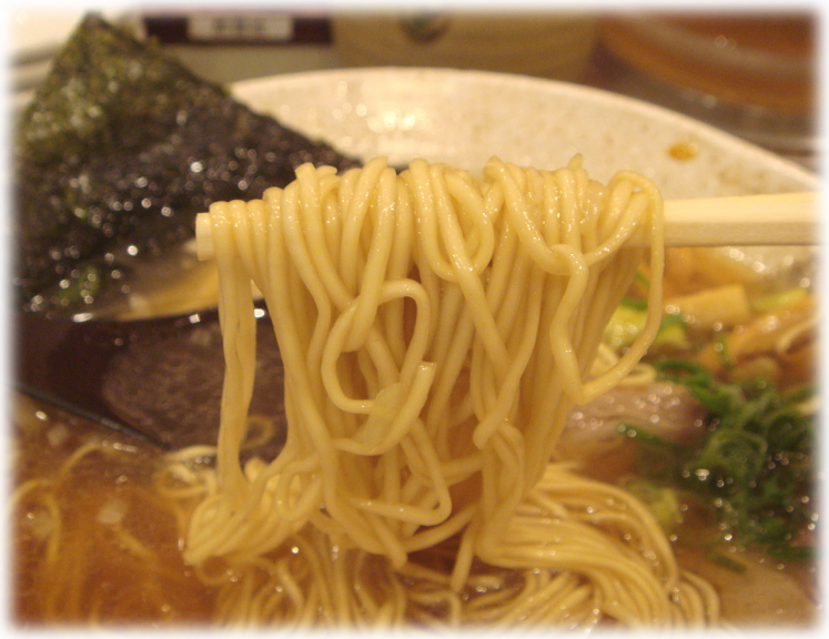 実はこれ、麺を0.5玉(通常料金より100円引き)で頼んだので丼自体が小さいかどうかわかりませんけど画像の見た目よりかは細い麺です。もうちょい太くてもいいかなぁなんて思いましたけど、麺にスープが絡んでこちらもいいですねぇ。