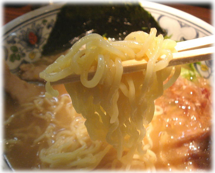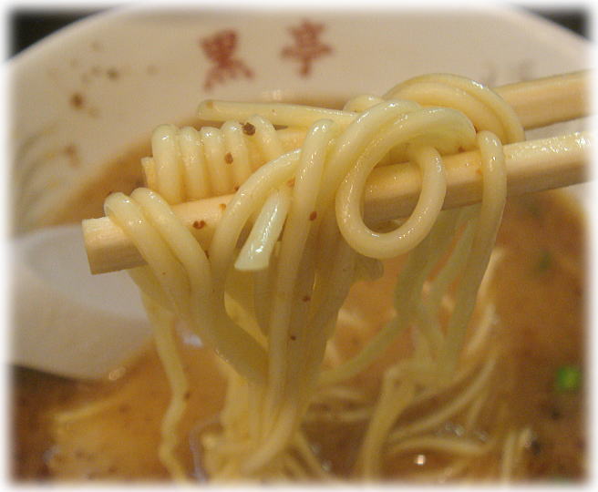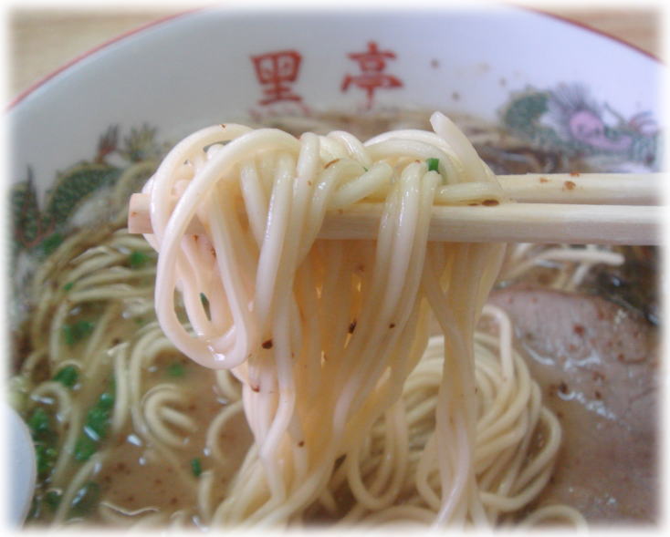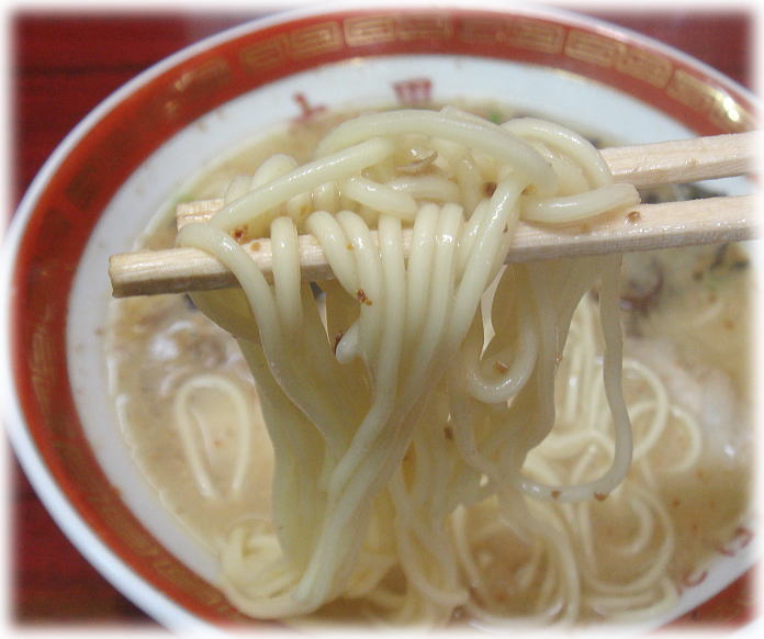 麺は熊本では一般的な中麺で、意外に歯ごたえがもっちりしていて美味しくいただけました。全体的に悪くは無いんですけど期待して行ったので、な〜んか肩透かしな一杯だったなぁ。