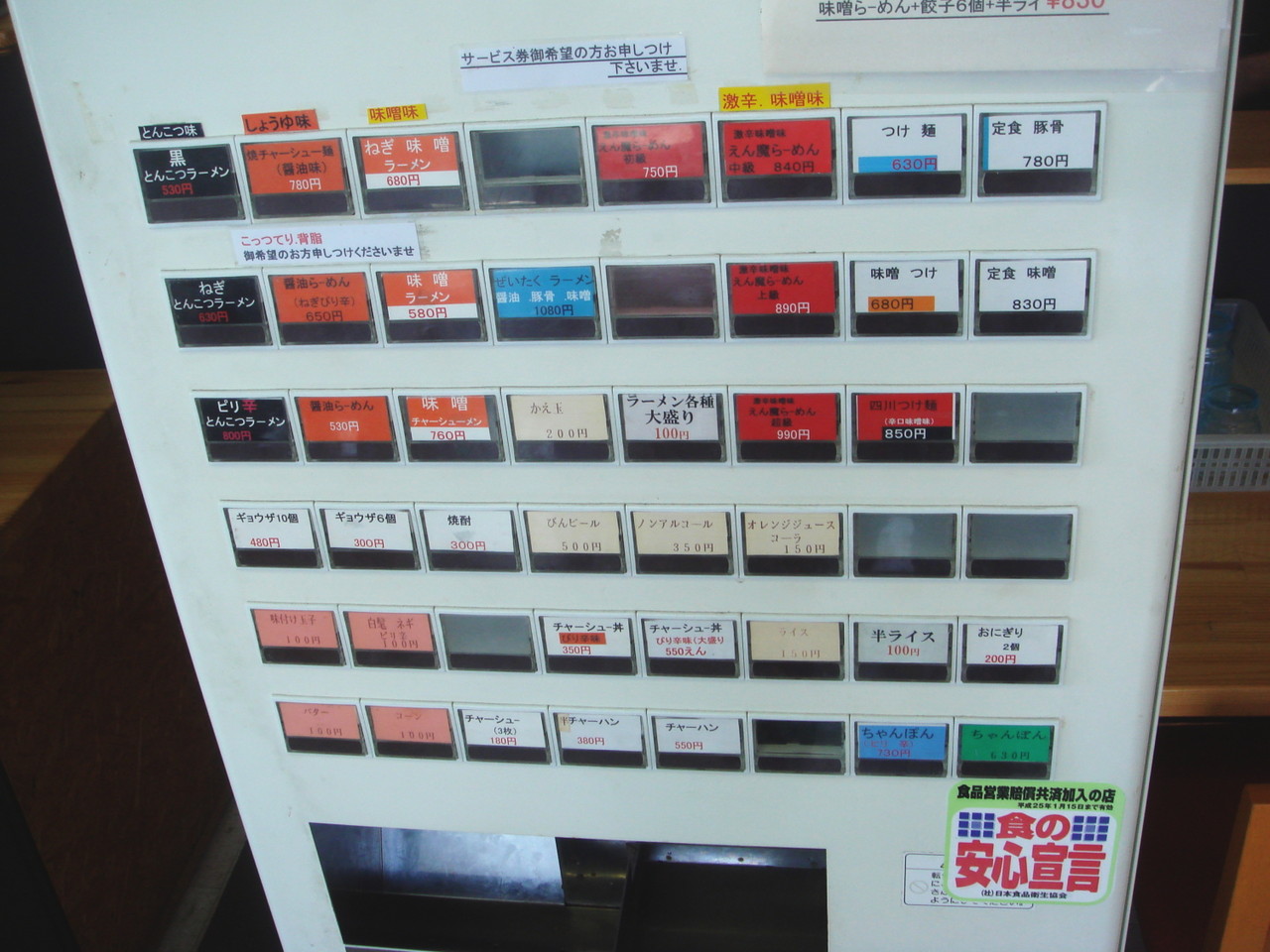 食券機を見ると、「とんこつ黒」ってのがこってりで「とんこつ赤」があっさりらしいので、黒ラーメンを注文。