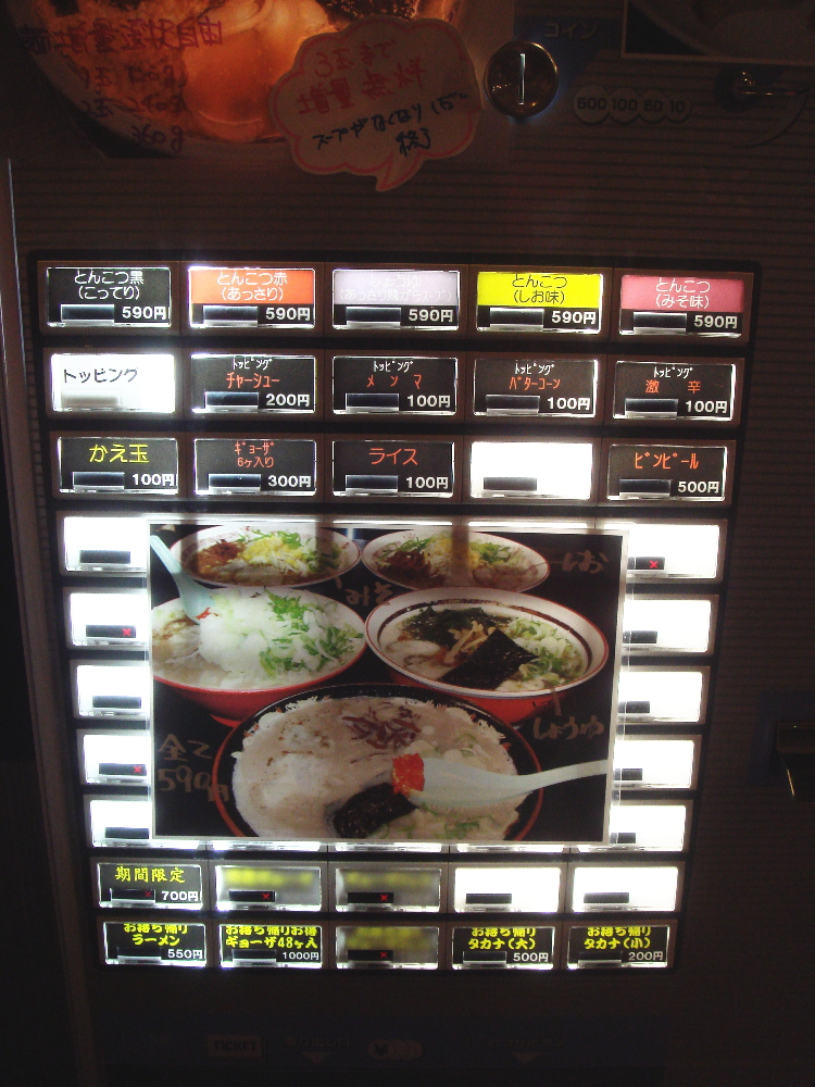 券売機を見ると普通のラーメンは無いみたいで、黒とんこつラーメンてのがデフォらしいのでそちらを注文。