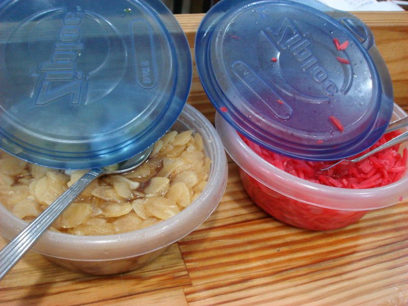 カウンターの上に高菜があるのでそちらを小皿に取り準備万端。