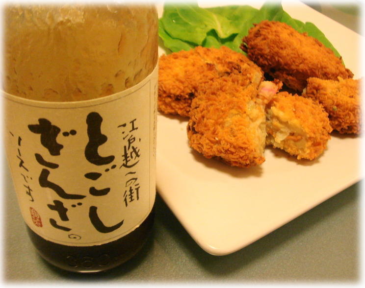 ソースをかけないで最初は食べたんですけど、どちらもけっこう味が濃い目で正油味の方はピリリと胡椒がきいていて意外や意外でいけますよコレ。普通のコロッケとしても美味しい部類に入ると思います♪