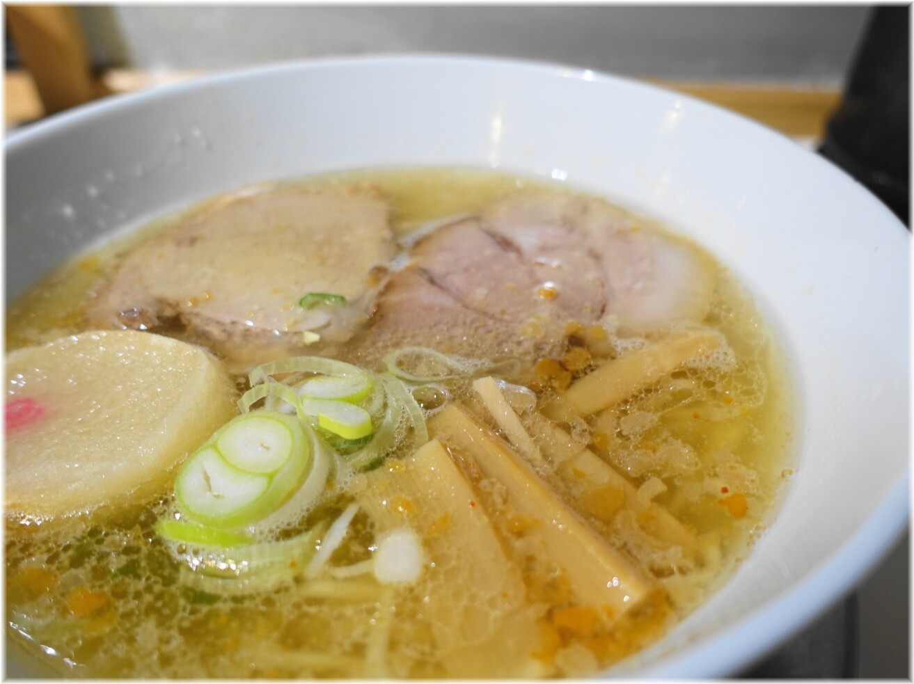 とりあえず通堂うま塩ラーメン 新・おんな味玉子入りをお願いしました。