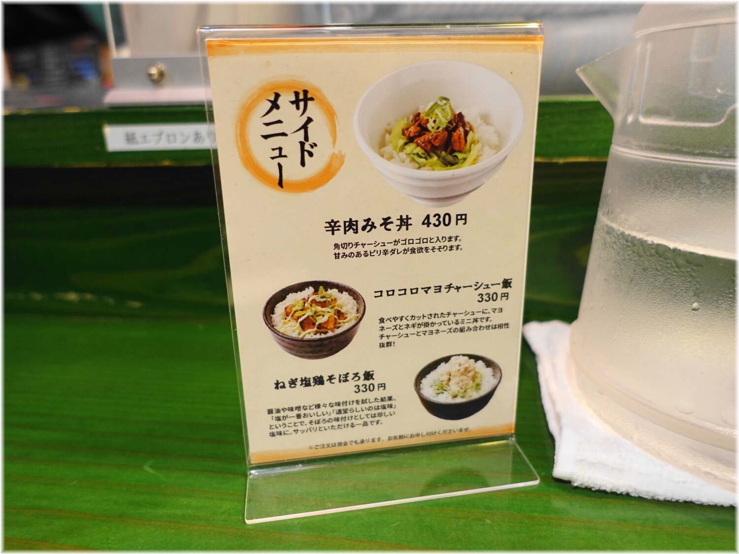 オーダーはラーメン並の好み普通とライスなんだけど、本当はチャーシューメンを頼みたかったのにこの時間で売り切れってことは仕込みをミスったんだろうか?