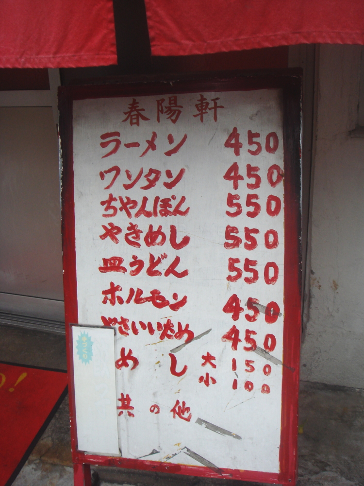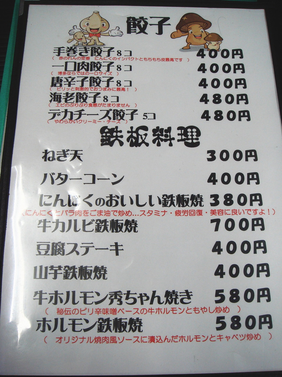 やきめし550円 ちゃんぽん550円 ホルモン450円