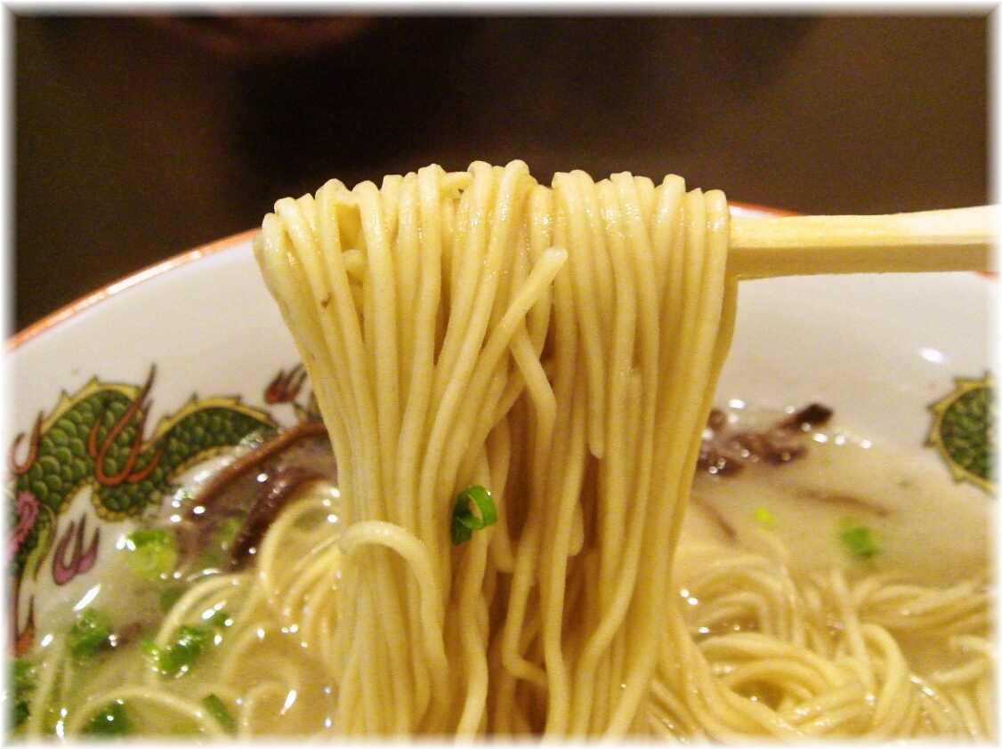 中細のストレート麺は、細目ではありますが一般的な豚骨に合わされる麺とは違いモチっとした食感があってなかなか美味しいですよ。