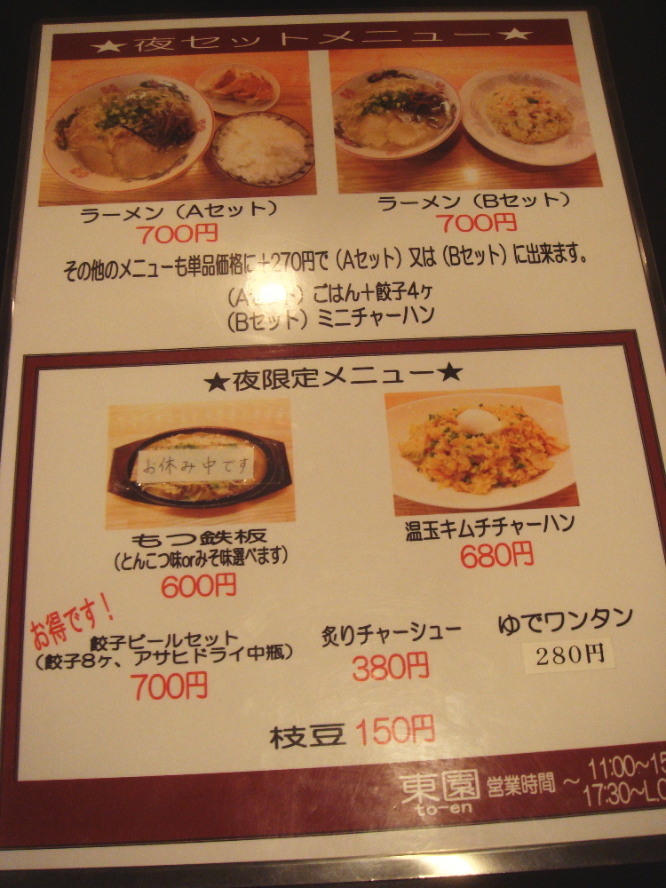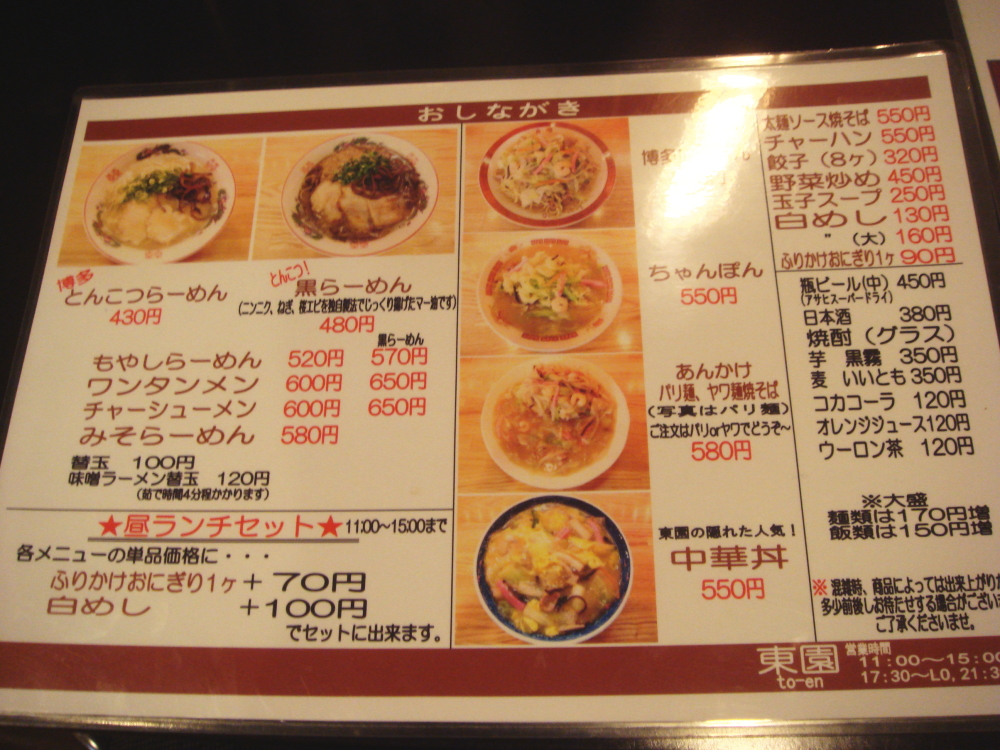 東園 (ラーメン / 馬出九大病院前駅、吉塚駅、箱崎宮前駅)