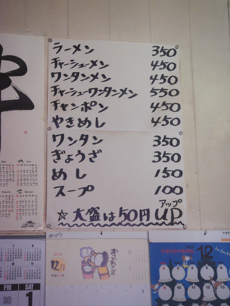 ワンタンメン450円 ラーメン350円