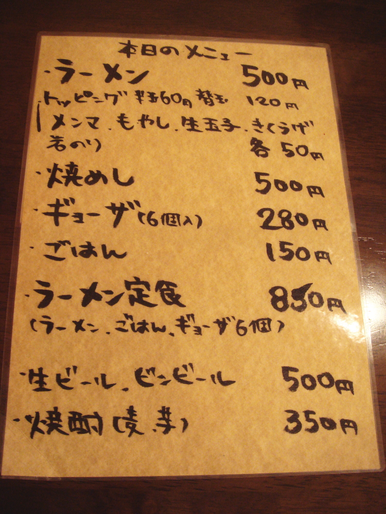 油そばなどもありましたが、最初なのでとりあえずラーメンを注文。
